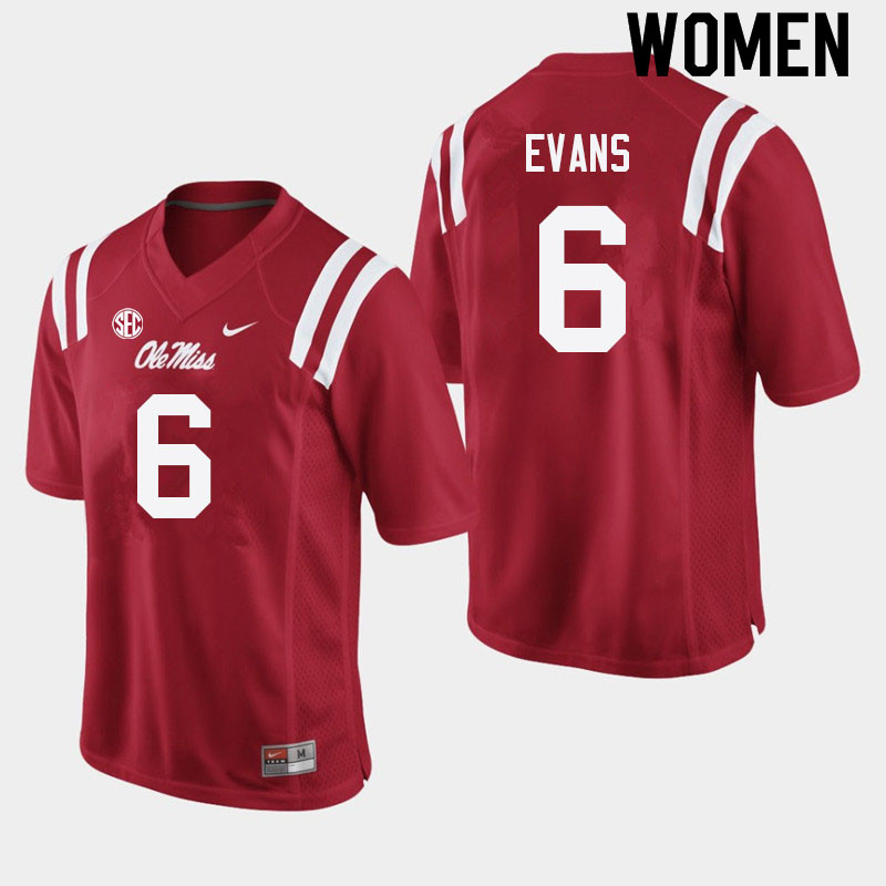 Women #6 Zach Evans Ole Miss Rebels College Football Jerseys Sale-Red